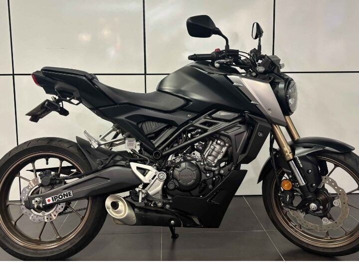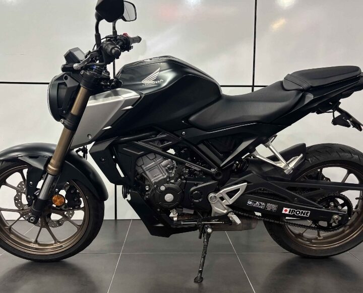Moto équipée d’un support de plaque court.